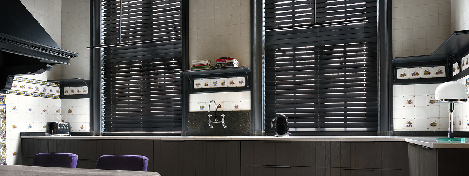 Venetian blinds create a luxurious and timeless atmosphere.